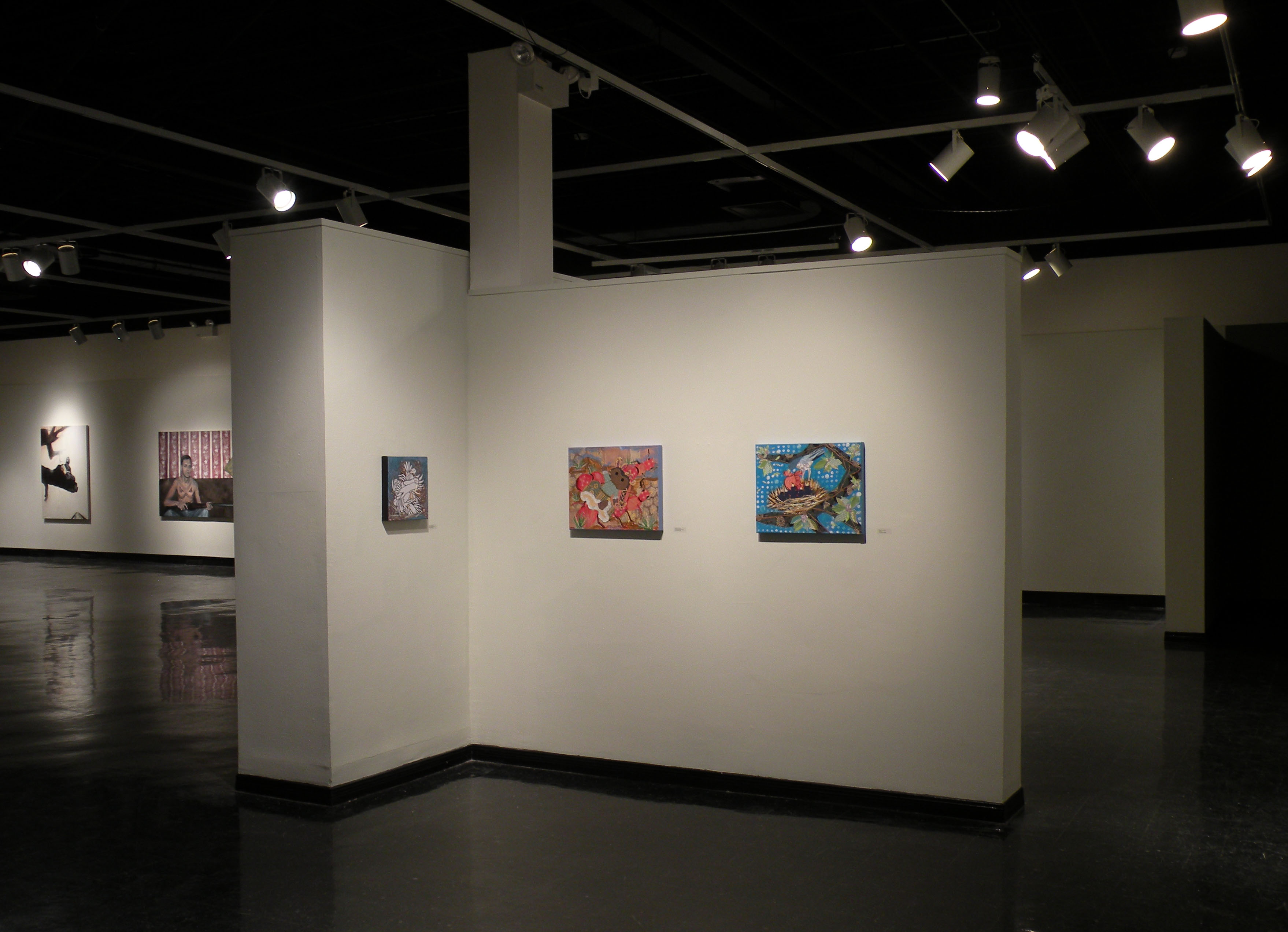 Installation view of small collages.